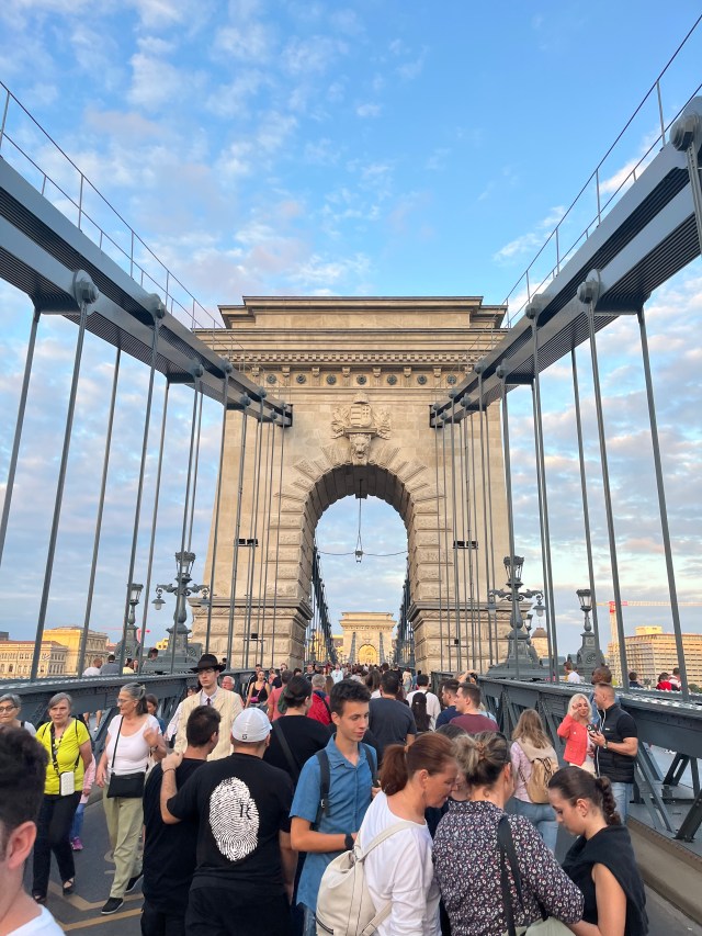 Known as the Lánchíd (lit. ‘lánc’ + ‘híd’, chain bridge), the bridge took nine years to complete and when it opened in 1849 linked the hearts of the two cities. When completed in spanned over two hundred yards and allowed for foot and vehicle traffic. The Lánchíd is also at the heart of the city’s identity as the first and the most central, it figuratively represents the merged city of Budapest. Next year will mark the 175th anniversary of the opening of the bridge, so in 2021 the bridge the Hungarian government closed the bridge for refurbishment and reopened last month. In celebration of the reopening and also to mark the 150thanniversary of the unification of Budapest, the city hosted the Lánchíd Fesztival including a free, public, open-air concert with many of Hungary’s popular musicians performing songs about the city. Below are some of the photos I took.