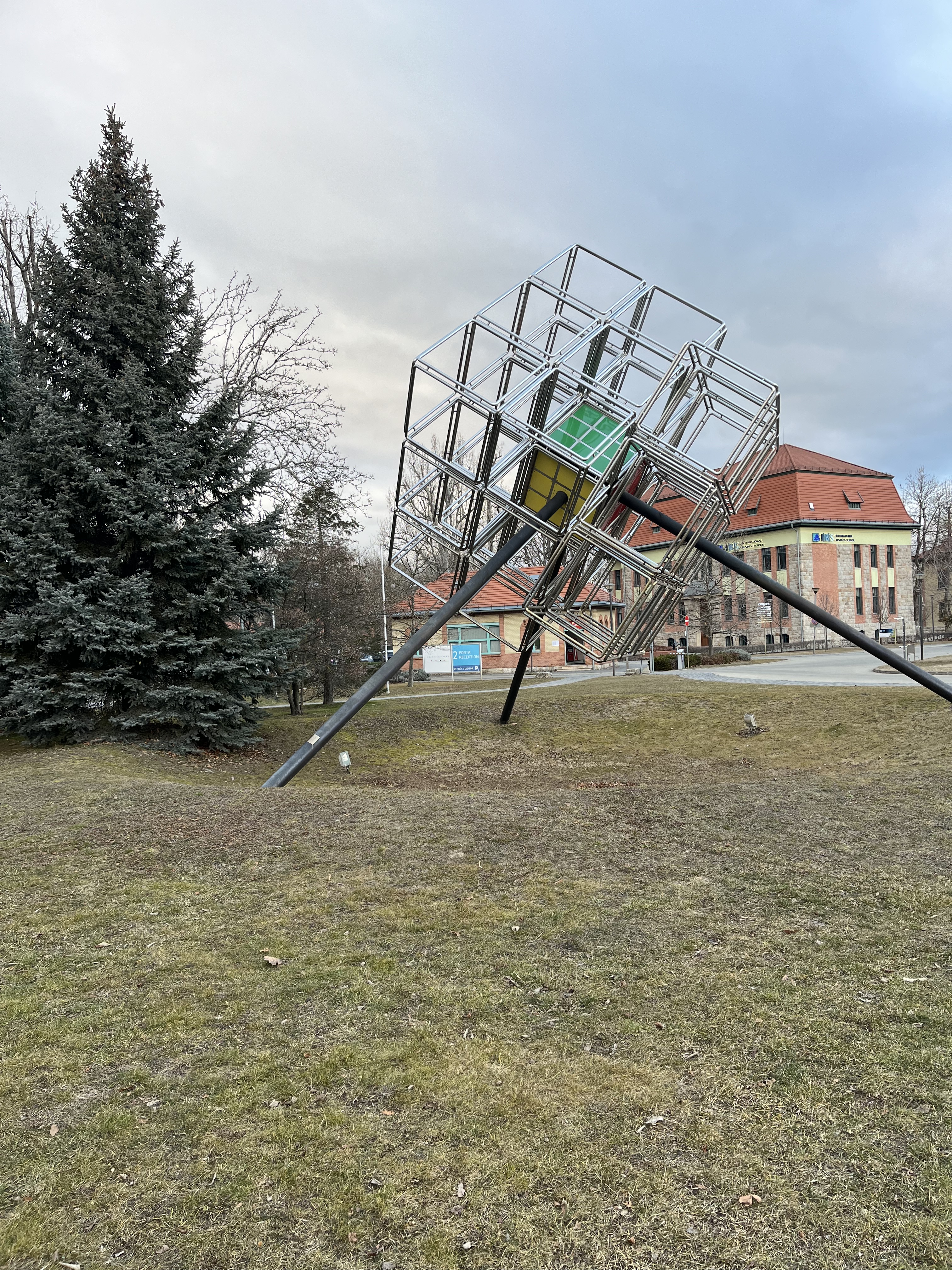In 2010, a sculpture honoring Rubik and his cube was unveiled at Graphisoft Park in Budapest. So, my friend and I made the trip out there to take pictures.