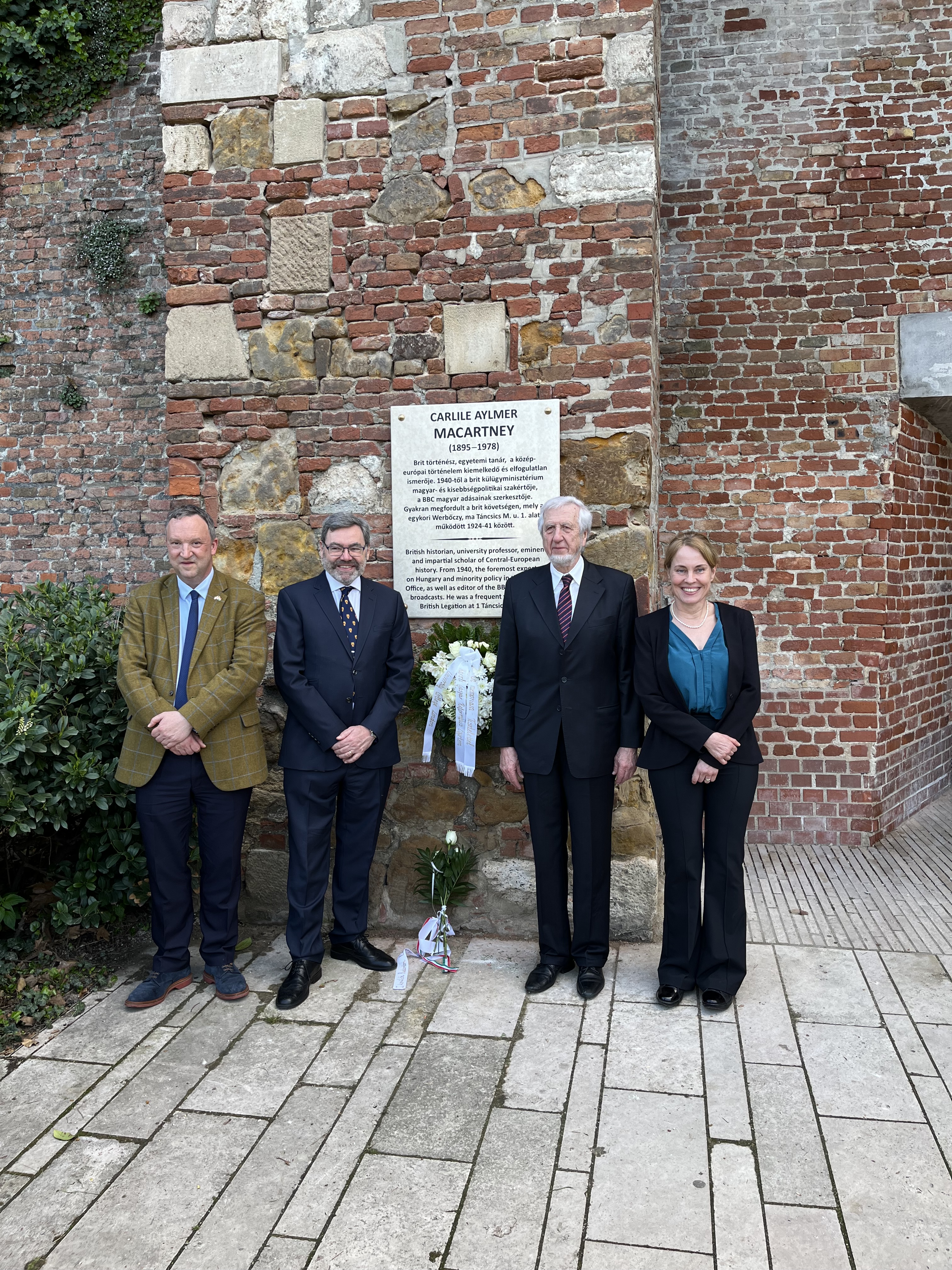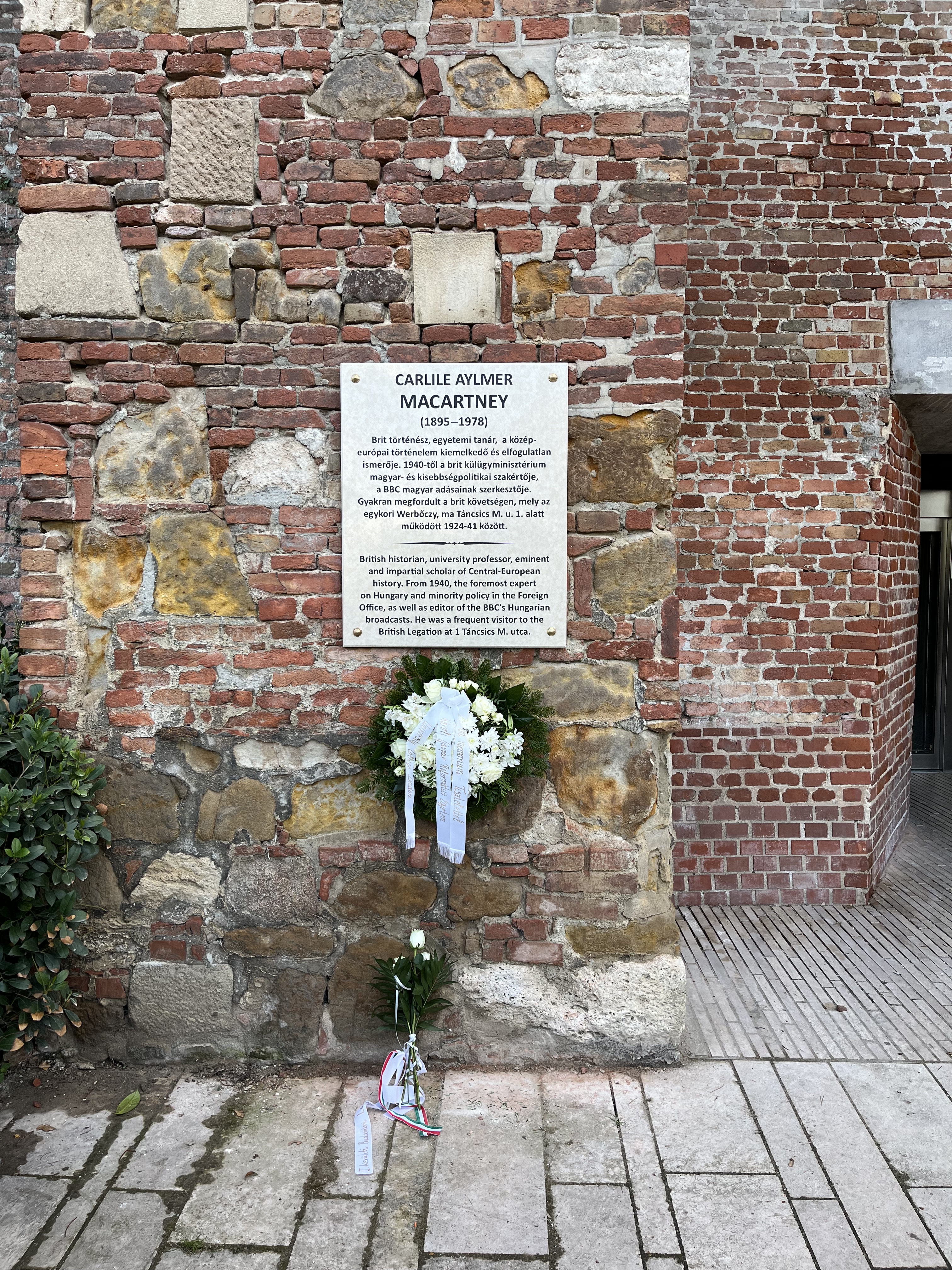 A consistent theme of the conference was the relationship both Macartney and Péter had with Hungary. Both men worked at the intersection of academic and policy research related to Hungary; moreover, they did so from a position of critical fondness. Each carried deep affection for Hungary and the Hungarian people while also providing clear-eyed criticism of the structural and political shortcomings of the Hungarian state. Together they witnessed the political turbulences of their beloved Hungary including, a Bolshevik revolutionary government, a nationalistic regency, the Nazi-aligned Szálasi government, the postwar chaos, Rákosi’s Stalinist communism, an ill-fated revolt, Kádár’s “goulash communism,” and the transition to a liberal, pluralist, democracy. Throughout these changes Macartney and Péter remained steadfast proponents of Hungary while providing informed and insightful criticism of the illiberalism and abuses of the various regimes and governments. It is for this reason they both are respected as impartial scholars and friends of Hungary. Thus, the conference concluded with the unveiling of a large plaque honoring Macartney in the Castle District located near the former British Legation that he frequented.