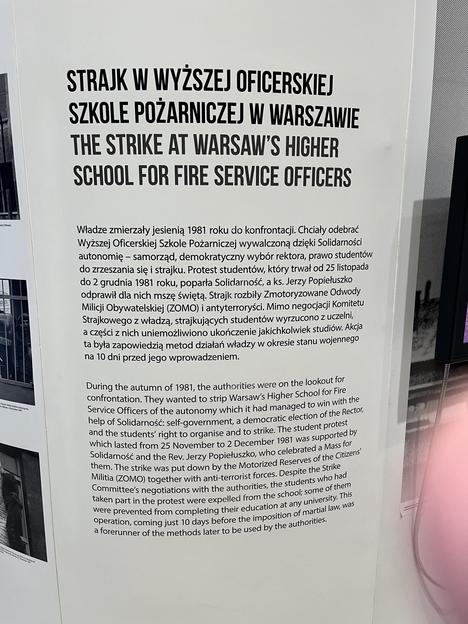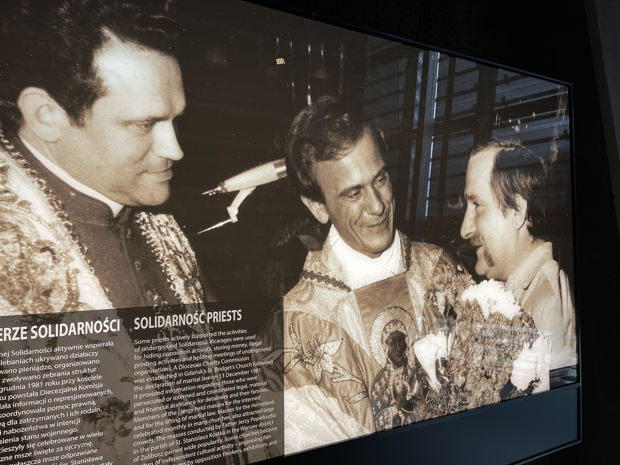 One of the aspects that particularly resonated with me was the role of the Solidarność Priests, including Father Henryk Jankowski and Father Jerzy Popiełuszko. These priests actively participated in the strikes and other activities of Solidarność. Several exhibits described the spiritual and moral support these priests provided to workers during strikes and to Solidarność members persecuted during the martial law.