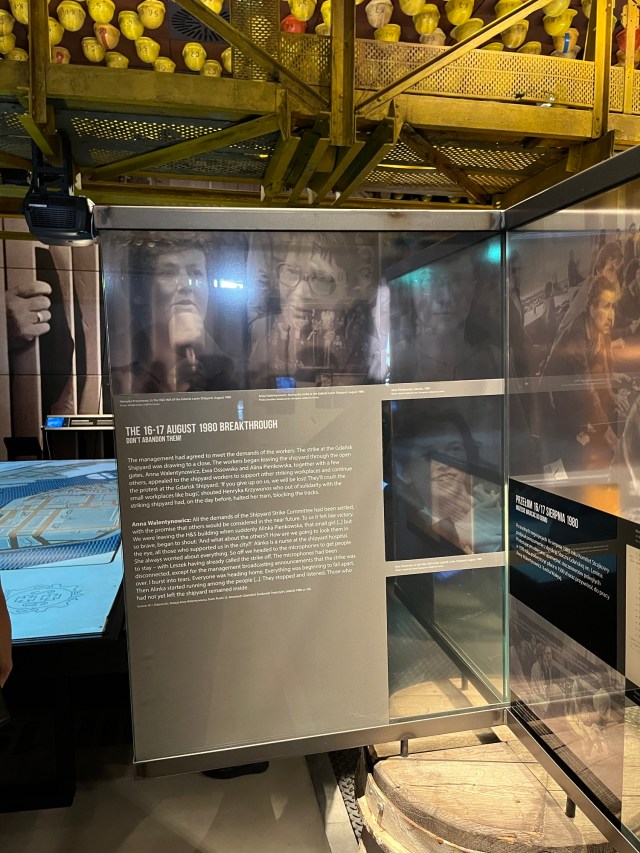 Part of what made the exhibits at the European Solidarity Centre stand out is that these women were integrated into the story throughout the exhibits, because they were critical to it. While that may seem obvious, in many museums and history books women remain on the margin of the narrative regardless of their role. The beauty of the history of Solidarność is that it reminds us that the question is not “did women participate” but rather “what role did women play.” In fact, taking women out of the story not only changes it but what remains does not make sense. That is true not only for Solidarność, it is true for all of history.