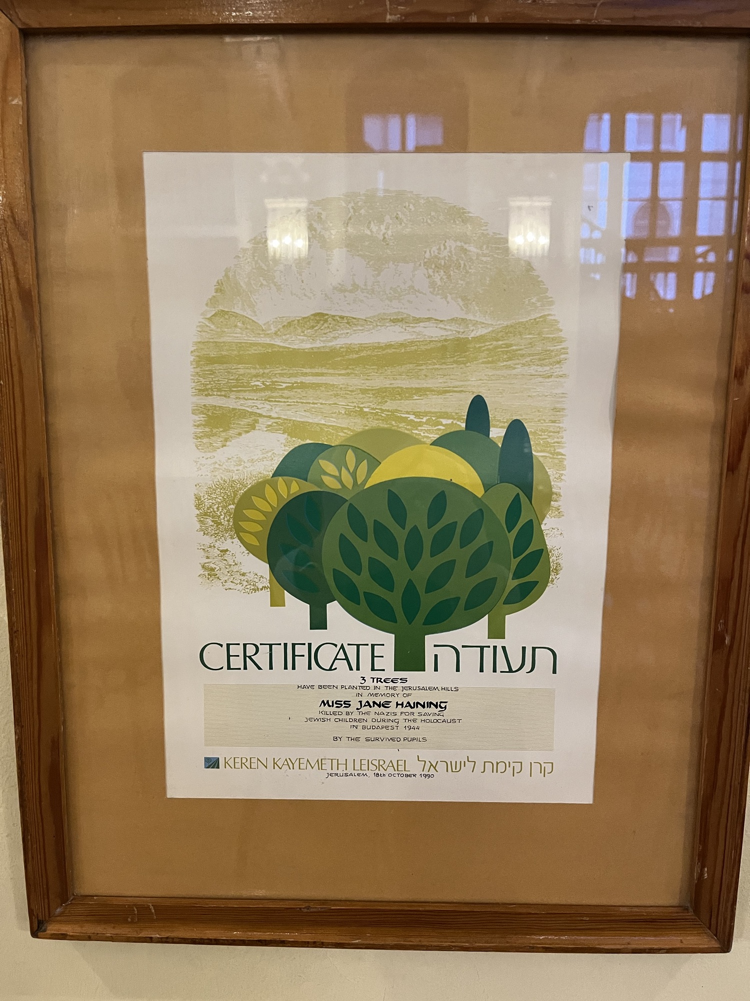 Haining is considered a martyr by the Church of Scotland and the Reformed Church of Hungary and honored as “Righteous Among the Nations” by Yad Vashem. As such, her story is hardly untold even though it may remain unknown to many. I first learned her story when I began attending services at the same Scottish mission church, now St. Columba’s Church of Scotland. Inside the church are several memorials to Haining, including a display of some of her books.